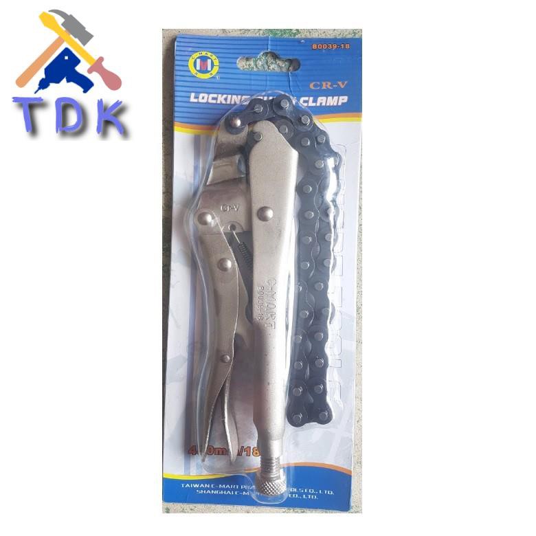 Kìm chết xích – kìm bấm xích 450mm/18″ B0039-18 CMART Cảo lọc dầuKìm chết dây xích là dạng kìm chết đặc biệt với phần xích ở đầu kìm, chuyên dùng để tháo, mở, kẹp, giữ , khóa các chi tiết như: tuýp, ống... ở mọi hình dáng và kích thước phổ biến