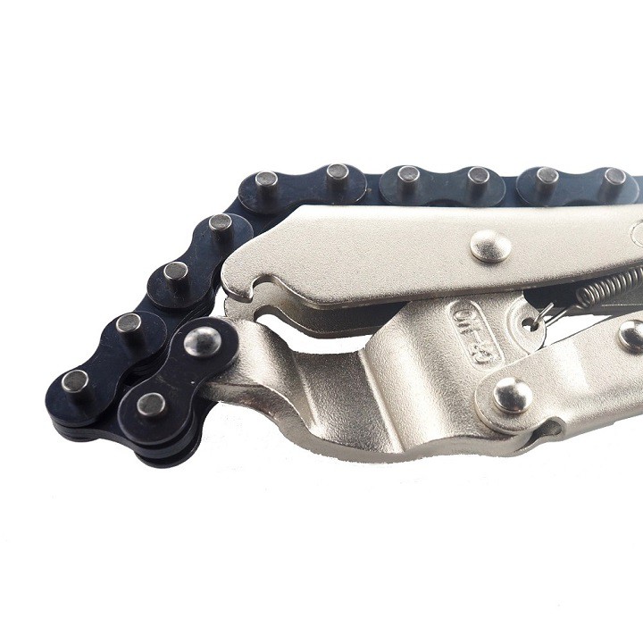 Dây xích của kìm được thiết kế giống dây xích xe đạp, giúp giữ chặt các chi tiết không bị xê dịch trong khi vặn.