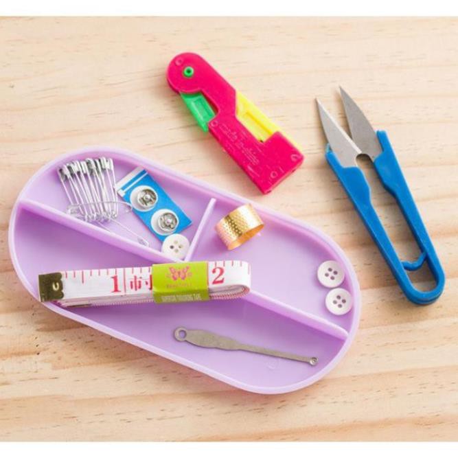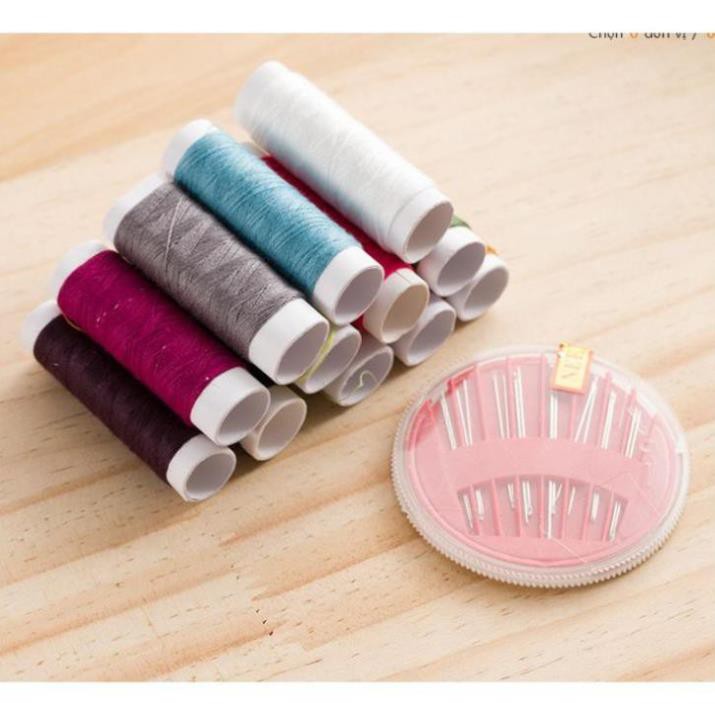 🍀 Bao gồm: 10 cuộn chỉ màu, 01 hộp kim các loại, 01 lấy ráy tai, 01 kéo cắt chỉ, 01 thước dây, 10 kim băng, 2 cúc bấm.