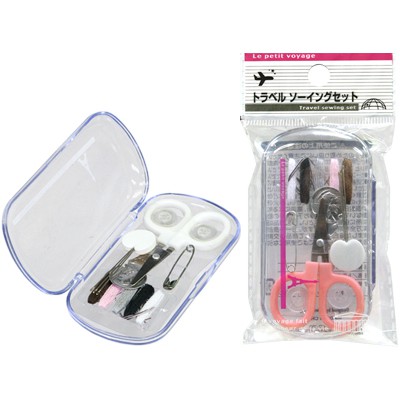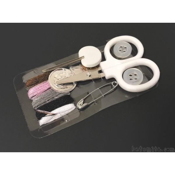 - Công dụng: set gồm 1 kéo cắt, 2 kim khâu, 1 set chỉ, 1 kim băng, 2 cúc và 1 hộp đựng. Rất tiện dụng để mang theo khi đi du lịch........................................................................................................................................................................