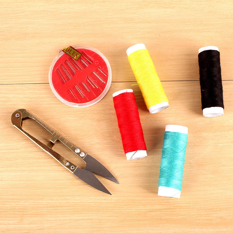 – Bộ sản phẩm bao gồm 3 món vật dụng may vá cơ bản nhất là kim, chỉ và kéo bấm