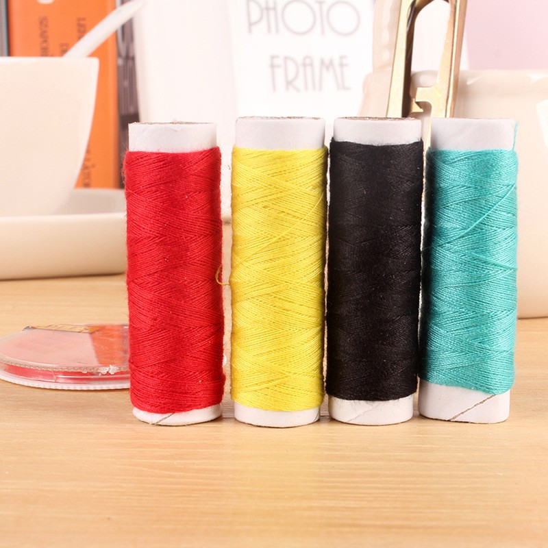– Bộ sản phẩm bao gồm: 1 vỉ kim khâu + 4 cuộn chỉ màu + 1 kéo bấm