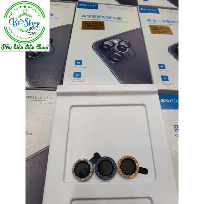 Kim Cương Vàng Xanh Nhũ Iphone 11 12 Mini 12/ 12 Pro max ️Bộ 3 mắt️Dán từng mắt camera chống trầy Kuzoom Bảo vệ cam