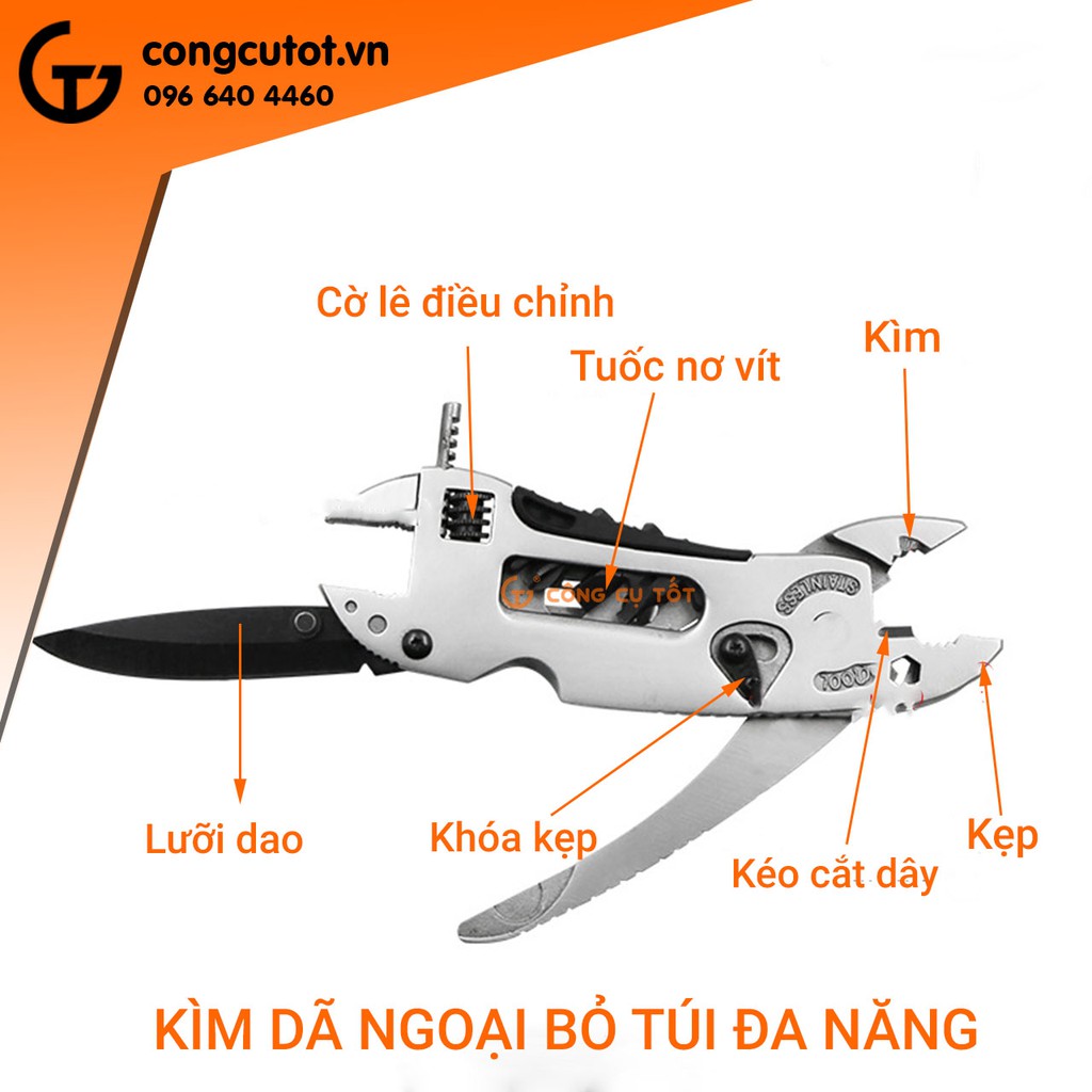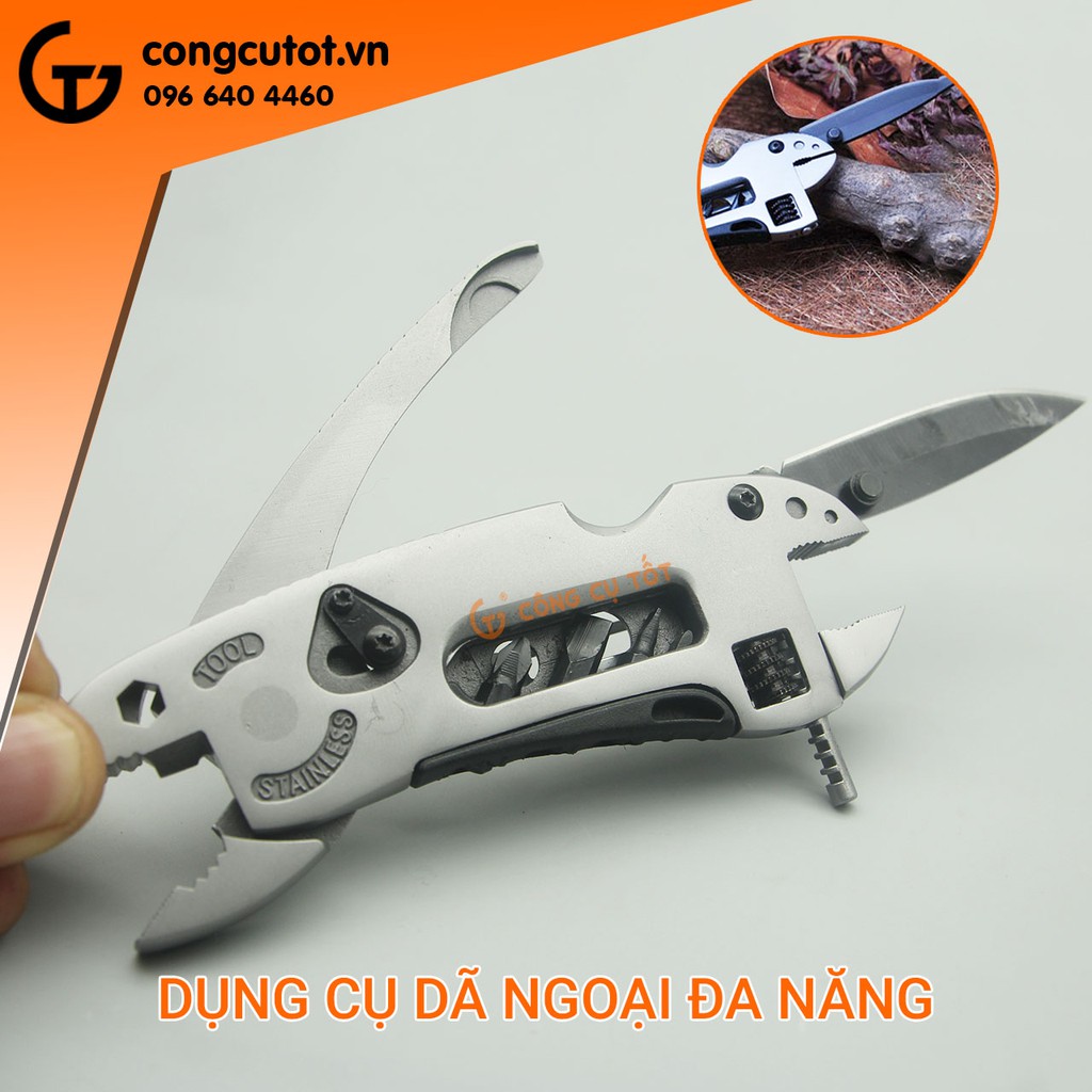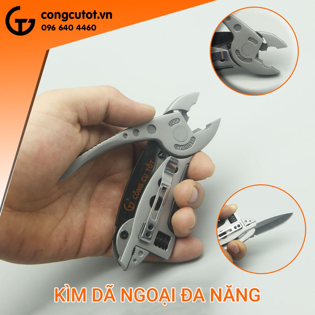 Đồ dã ngoại đa năng bỏ túi GT1430 là dụng cụ cầm tay tiện lợi được tích hợp với nhiều chức năng khác nhau như: cờ lê điều chỉnh, lưỡi dao, khóa kẹp, các đầu vít....Vì vậy đây là sản phẩm vô cùng thích hợp cho những người yêu thích thể thao, đam mê khám phá, du lịch.THÔNG SỐ SẢN PHẨM: