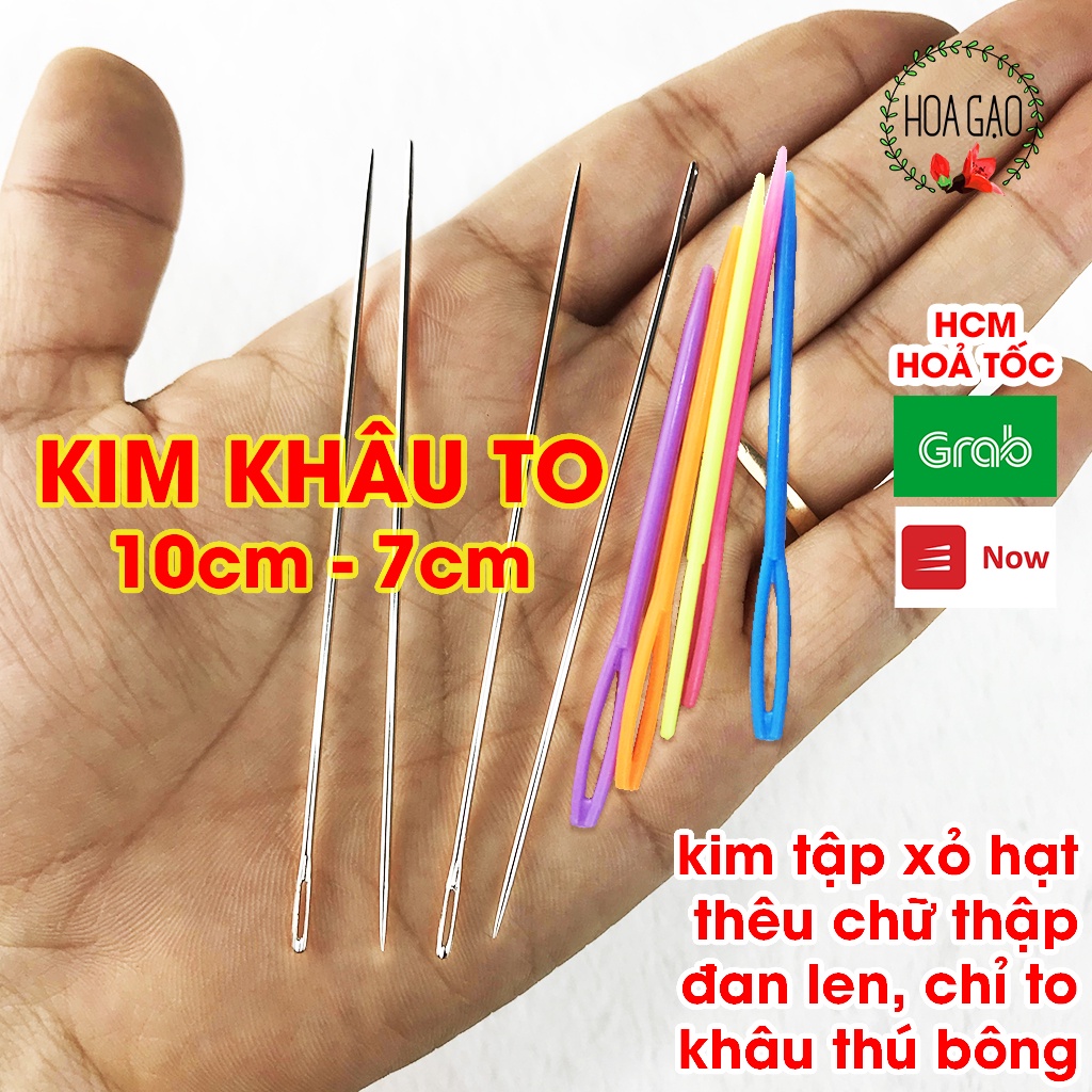 Giới thiệu Kim đan len kim khâu len may tay to đầu nhọn, kim nhựa đầu tà HOA GẠO GK15 7cm 10cm dụng cụ may mặc loại tốt