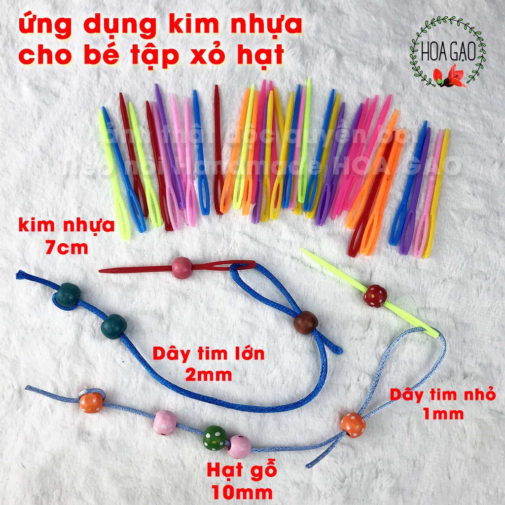 - Mua thêm hạt gỗ size từ 10li, dây tim nhỏ (lớn) tại Hoa Gạo để bé tập xỏ rất an toàn vì đầu kim tà không nguy hiểm.
