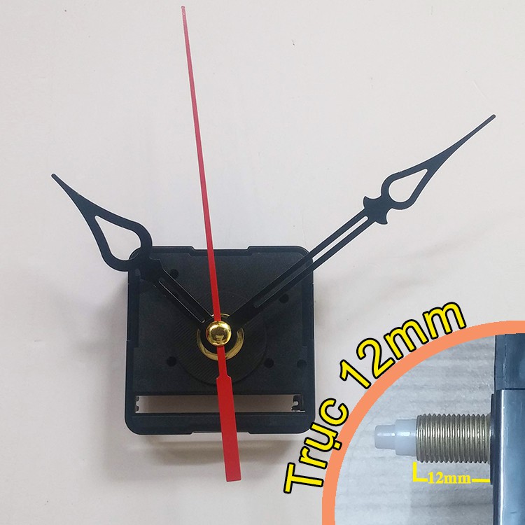 Bộ kim đen 10cm và Máy đồng hồ treo tường Taiwan loại tốt - Kim trôi trục 12mm