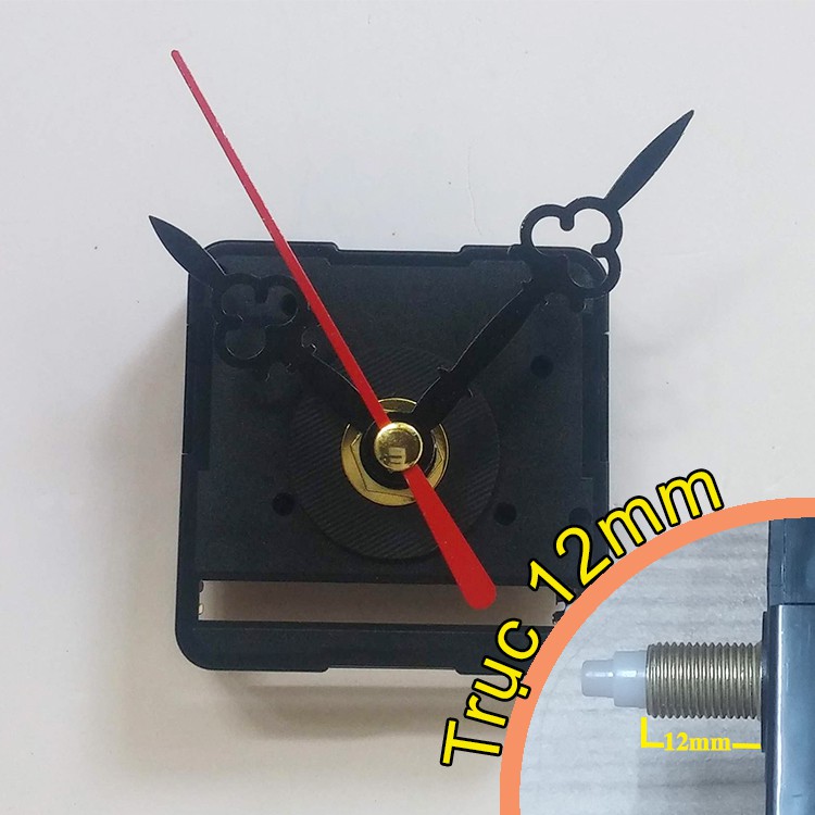 Bộ kim đen 6cm và Máy đồng hồ treo tường Taiwan loại tốt - Kim trôi trục 12mm