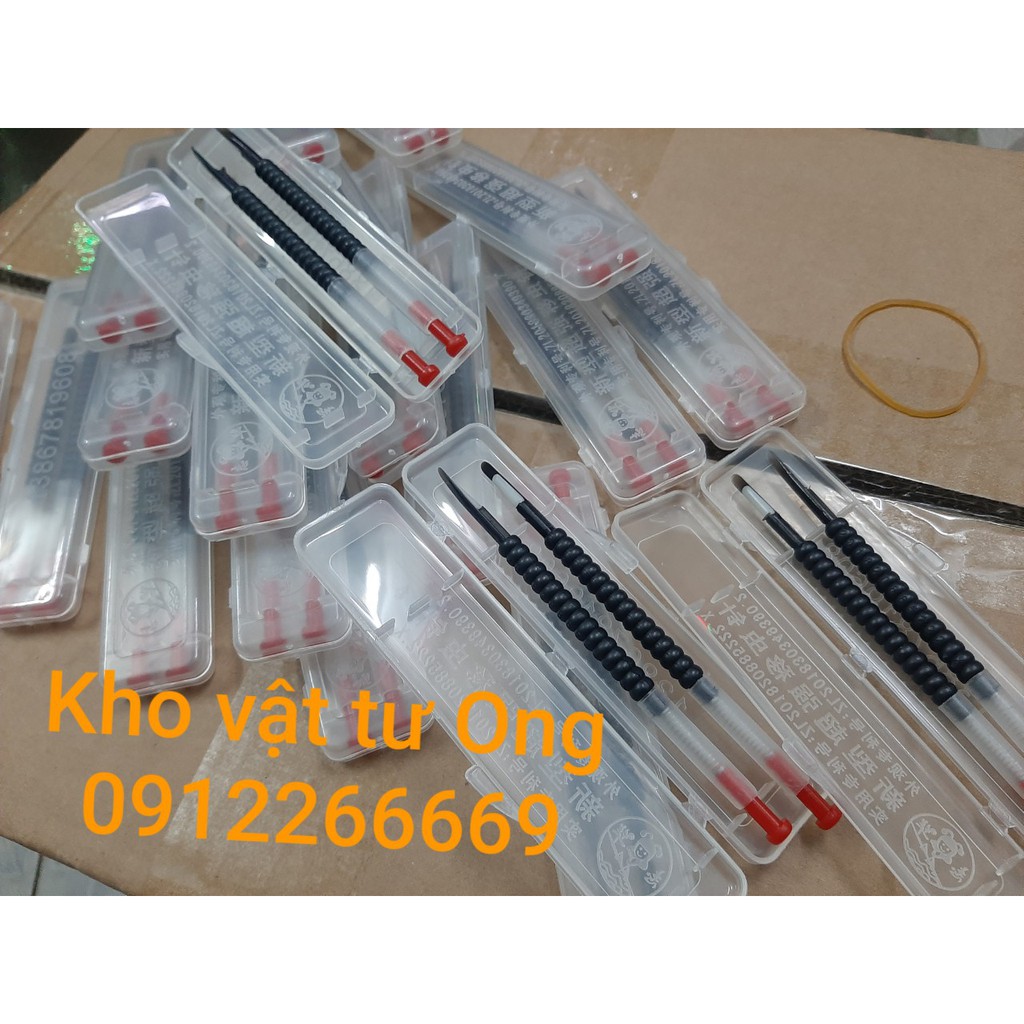 _ Dùng kim di trùng đưa vào phía lưng của ấu trùng, cố gắng lấy cả sữa chúa để ấu trùng không bị tổn thương; đặt nhẹ kim di trùng vào giọt mật, ấu trùng sẽ nổi lên, nhẹ nhàng rút kim ra và tiếp tục múc ấu trùng khác._Đầu kim mỏng,mềm,để ta dễ dàng thao tác