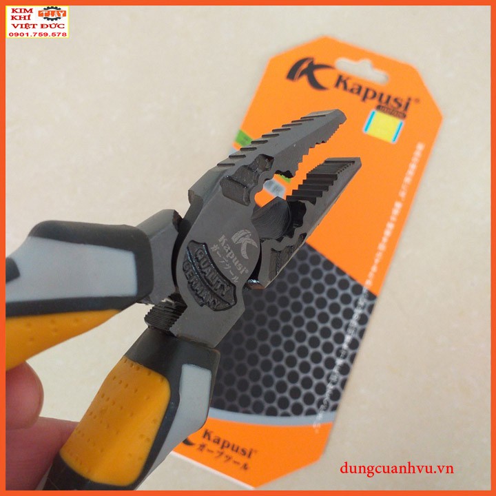 Kìm điện KAPUSI là dụng cụ được sản xuất sản bởi hãng KAPUSI, là loại kìm đa năng. Kìm có độ bền cao, khả năng chịu nhiệt tốt, công năng đa dạng. Khả năng cắt dây cũng tốt.