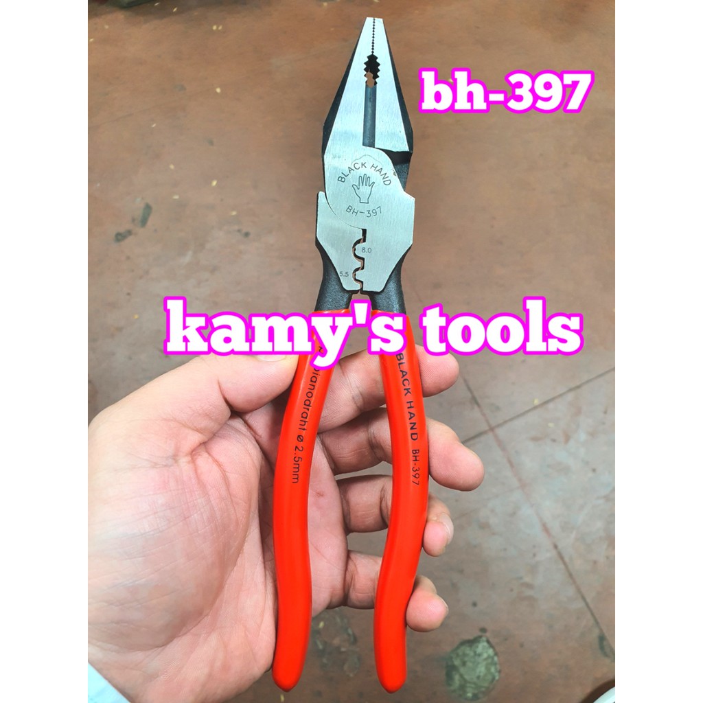 Kamy’s tools chuyên phân phối các loại kìm điện, kềm điện, kìm điện đa năng, là một trong những dụng cụ cầm tay chuyên dùng để cắt, bấm, kẹp, tuốt sử dụng nhiều trong điện lực. Trong đó có kìm điện black hand bh-397 9 inch bấm cos 1.25-8mm2 là một trong những model kìm điện của Black Hand xuất xứ Taiwan, có chiều dài kìm là 9 inch tương đương với 225mm được bọc lớp vỏ cao su đỏ cách điện. Kìm điện black hand bh-397 9 inch bấm cos 1.25-8mm2 có chất lượng thép được tôi luyện qua nhiều quá trình giúp cho lưỡi cắt của Kìm điện black hand bh-397 9 inch bấm cos 1.25-8mm2 rất sắc bén và bền có thể cắt được dây đàn piano đường kính 2.5mm và có thể cắt được đinh thép dày 4mm. Ngoài ra kìm điện black hand bh-397 9 inch bấm cos 1.25-8mm2 còn có khả năng bấm các đầu cos điện có tiết diện từ 1.25-8mm2 rất thuận tiện. Kìm điện black hand bh-397 9 inch bấm cos 1.25-8mm2 là một trong những model được bán chạy nhất hiện nay, được các nhà thầu điện lực tin dùng để sử dụng.Giá DARKSTAR