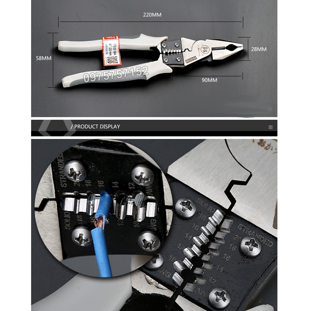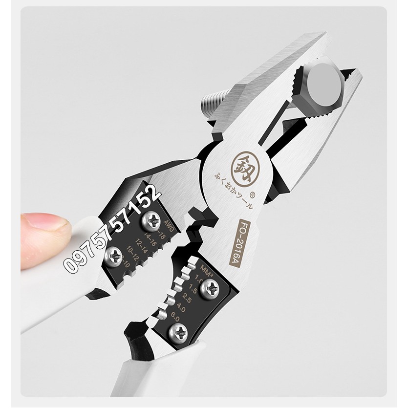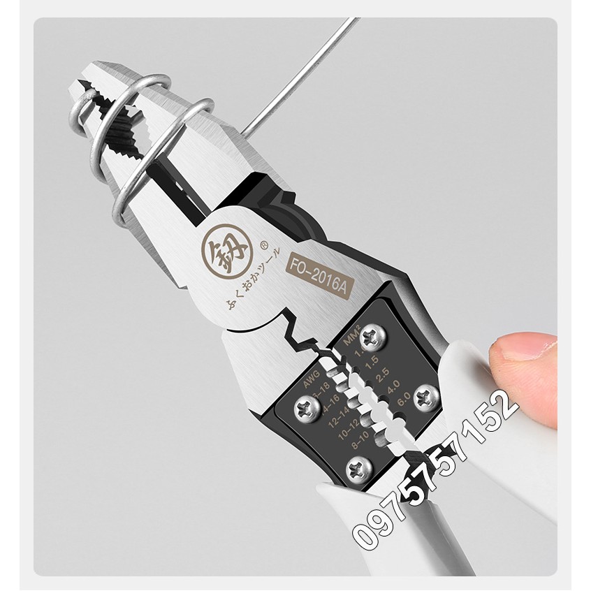 Nhà cửa & Đời sống > Dụng cụ & Thiết bị tiện ích > Dụng cụ > Kìm || Kìm điện đa năng cao cấp Nhật Bản 5 trong 1 FUKOUKA FO-2016A 8inch/220mm (Kẹp-Cắt-Uốn-Cuộn-Tuốt dây)Còn hàng