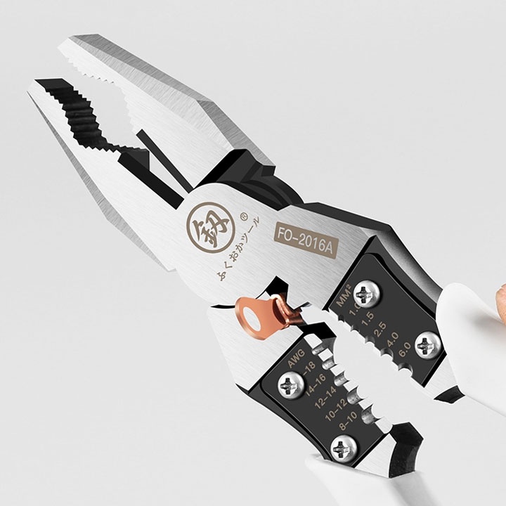 Nhà cửa & Đời sống > Dụng cụ & Thiết bị tiện ích > Dụng cụ > Kìm || Kìm Điện Đa Năng FUKOUKA 8inch/220mm, Thép CR-V Cao Cấp Nhật Bản 5 trong 1 - Kẹp - Cắt - Uốn - Cuộn - Tuốt Dây ĐiệnCòn hàng