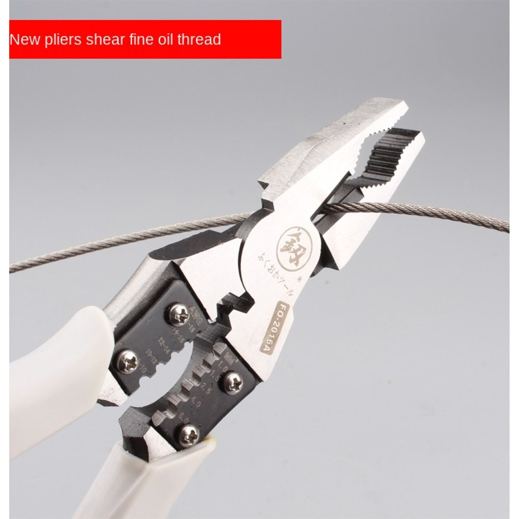 Kìm điện đa năng Nhật Bản FUKOUKA 8inch/220mm Kìm tuốt dây điện, Cắt dây cáp, bấm cos đa năng