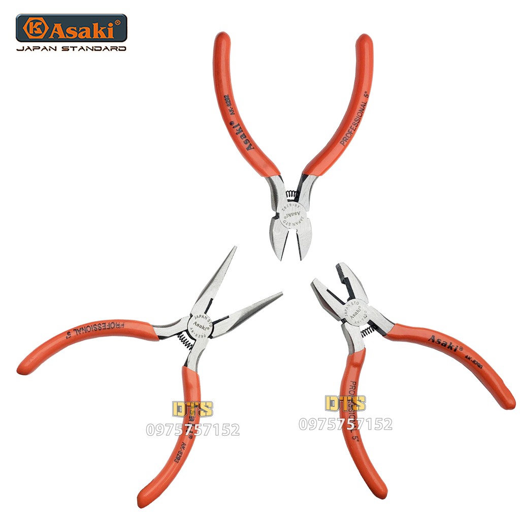 Giới thiệu Kìm điện - kìm cắt - kìm nhọn, kìm mini 5 inch Asaki JAPAN STD, thép CR-V độ cứng cao, lò xo tích hợp tiết kiệm sức lực