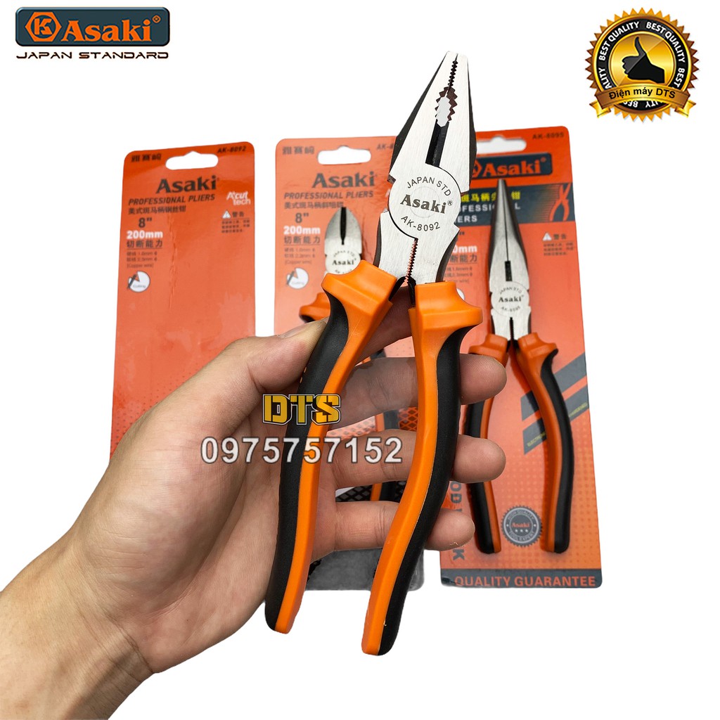 Nhà cửa & Đời sống > Dụng cụ & Thiết bị tiện ích > Dụng cụ > Kìm || Kìm điện, kìm cắt, nhọn 8 inch kiểu Mỹ A+cut Tech Asaki JAPAN STD 200mm, thép High Carbon độ cứng caoCòn hàng