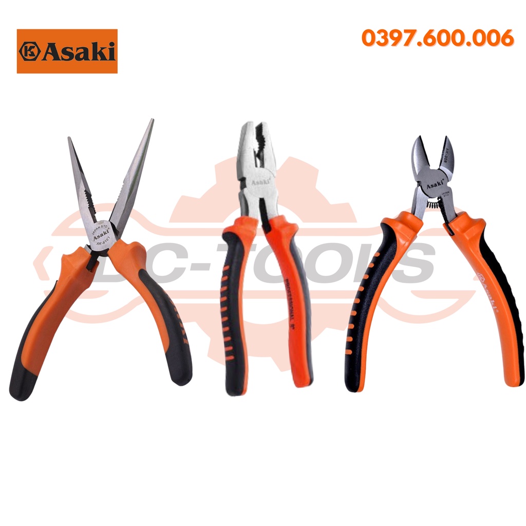 Kìm điện / kìm nhọn kết hợp cắt kiểu Mỹ Asaki AK-8092 (200mm) CHÍNH HÃNG DC TOOLS (KHO SỈ)