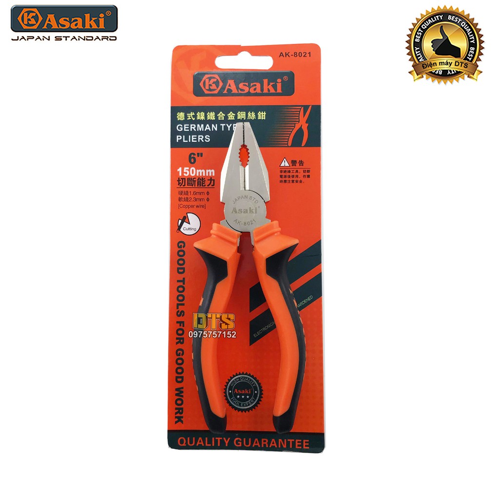 Nhà cửa & Đời sống > Dụng cụ & Thiết bị tiện ích > Dụng cụ > Kìm || Kìm điện, kìm răng tổ hợp cao cấp thép CR-V Asaki AK-8021 6 inch/ 150mmCòn hàng