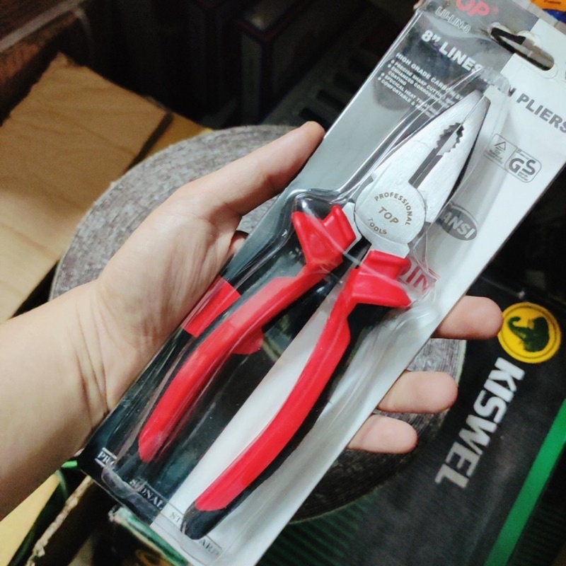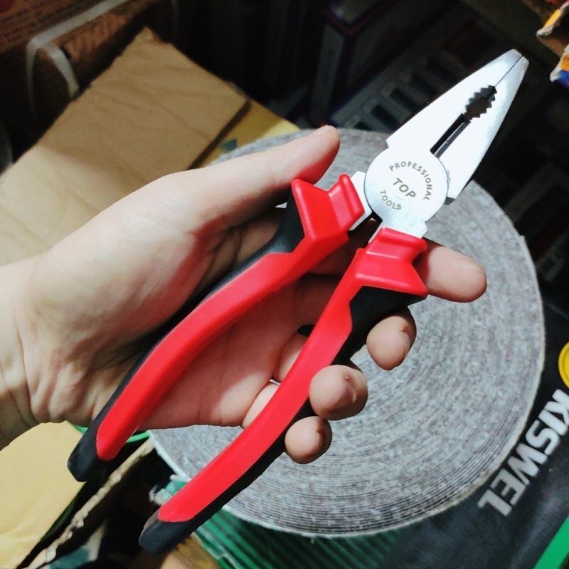 Kìm điện cán đỏ hiệu TOP, được sản xuất tại Đài Loan. Với thiết kế nhỏ gọn, và tiện dụng, sản phẩm này rất phù hợp để mang theo bên mình khi đi công trình hoặc thao tác trên cao.