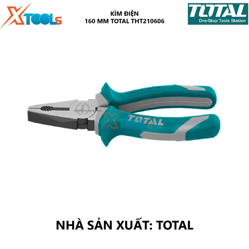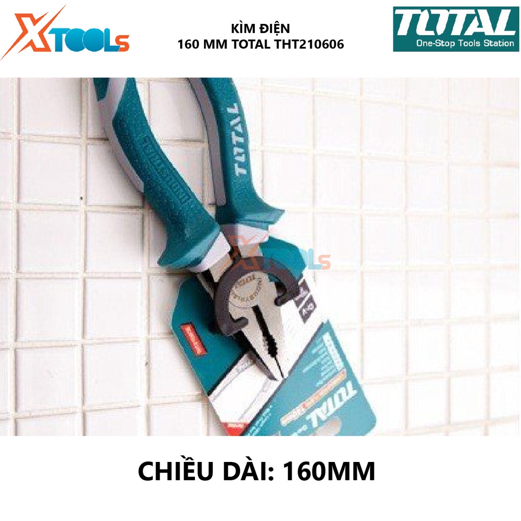 - Kìm điện TOTAL THT210606 là một đồ nghề cần thiết trong mọi gia đình, nó ngoài tác dụng giữ chặt những vật dụng còn có thể được sử dụng để thể mở được nhiều kích thước bu lông bằng cách tăng đưa ra vào phần đầu của kềm.