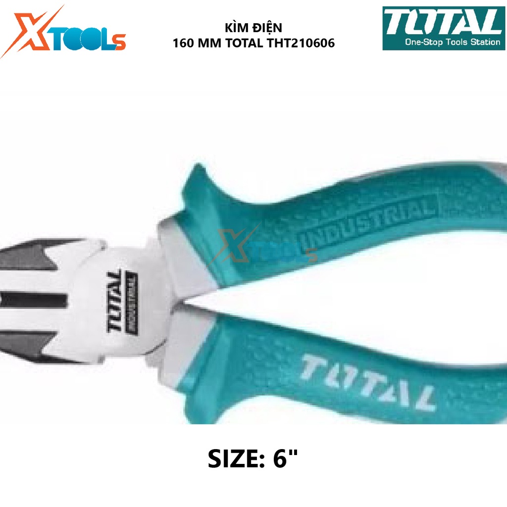 Giới thiệu Kìm điện TOTAL THT210606 | kềm răng Kích thước 6" (160mm), Khối lượng 0,2 kg, Cán bọc nhựa 2 màu xanh trắng bấm, cắt, tu