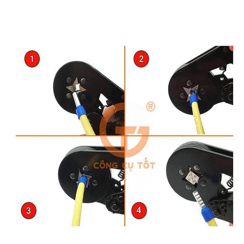 Giới thiệu KÌM ÉP COS TRÒN HSC8 6-4A Kìm ép cos tròn 4 cạnh