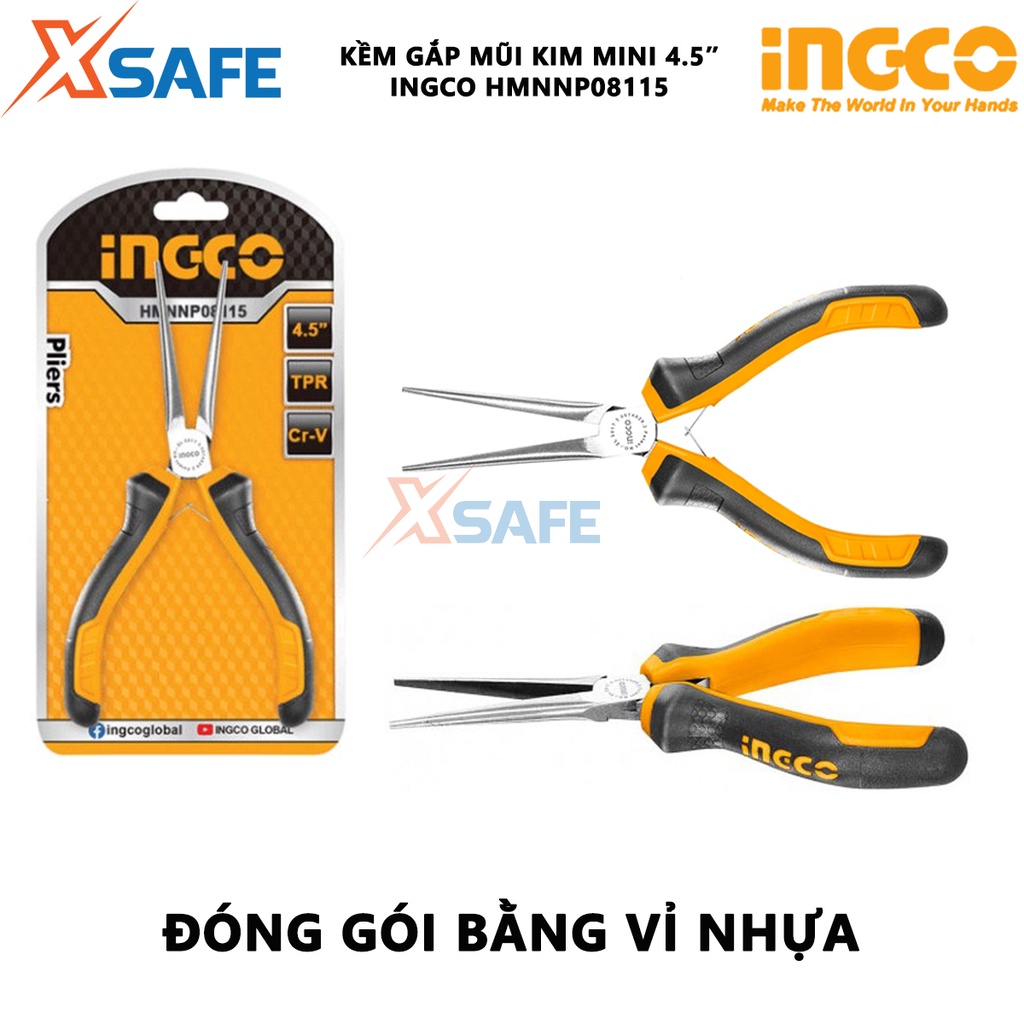 Kìm gắp mũi kim mini INGCO HMNNP08115 4.5 inch Kềm mini đầu kềm được đánh bóng và chống gỉ, tay cầm hai màu - [XSAFE]