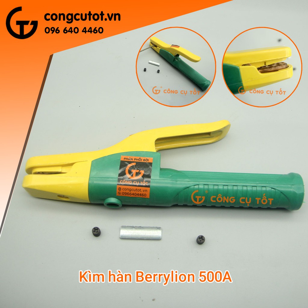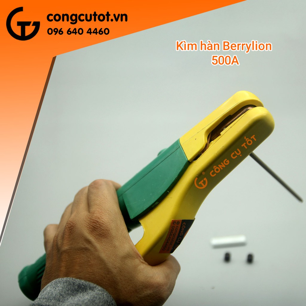Kìm hàn Berrylion 500A vừa có tác dụng giữ chặt que hàng và cung cấp dòng điện hàn khi hàn. Kìm hàn nhẹ, có khả năng giữ chắc que hàn, kẹp nhả một cách dễ dàng và chống nóng quá mức khi làm việc liên tục