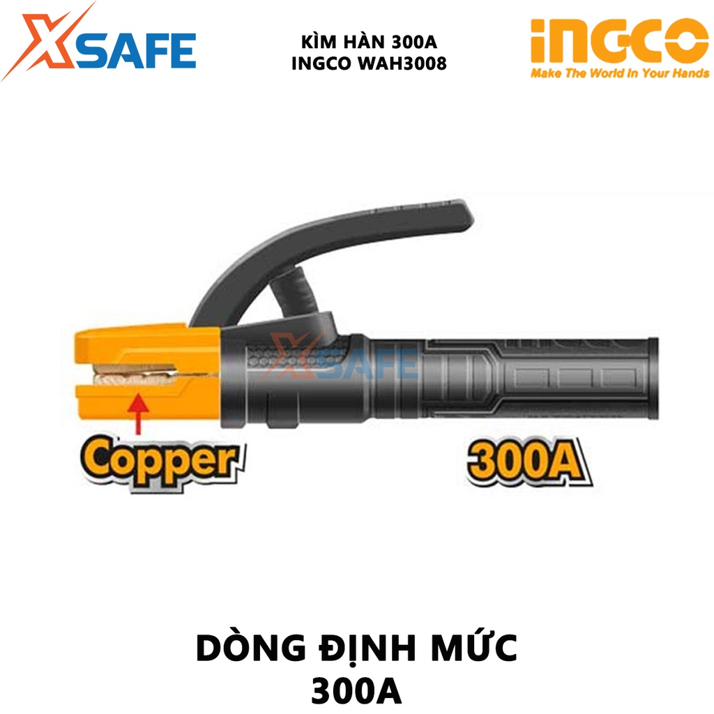 Kìm hàn INGCO WAH3008 Kềm hàn điện dòng điện định mức 300A luôn ổn định, sử dụng cho máy hàn MMA của Total, Ingco