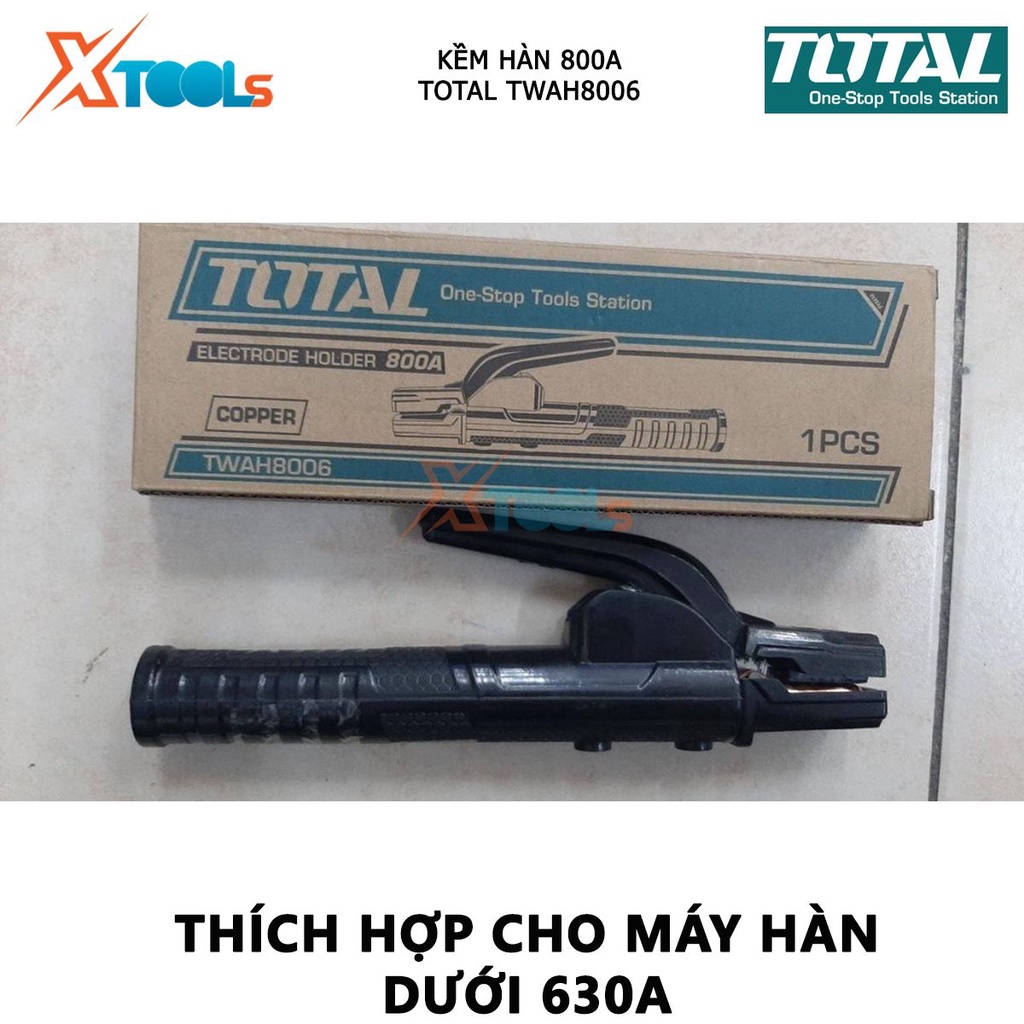 Giới thiệu Kìm hàn TOTAL TWAH8006 kềm hàn Dòng điện định mức 800A, Điện thế 220-240V,Hợp máy hàn Total dưới 630A 30/T, kẹp mũi hàn