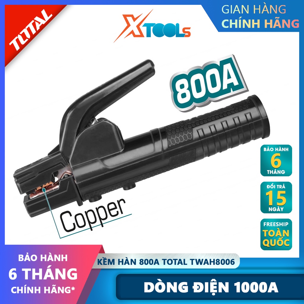Nhà cửa & Đời sống > Dụng cụ & Thiết bị tiện ích > Dụng cụ > Kìm || Kìm hàn TOTAL TWAH8006 kềm hàn Dòng điện định mức 800A, Điện thế 220-240V,Hợp máy hàn Total dưới 630A 30/T, kẹp mũi hànCòn hàng