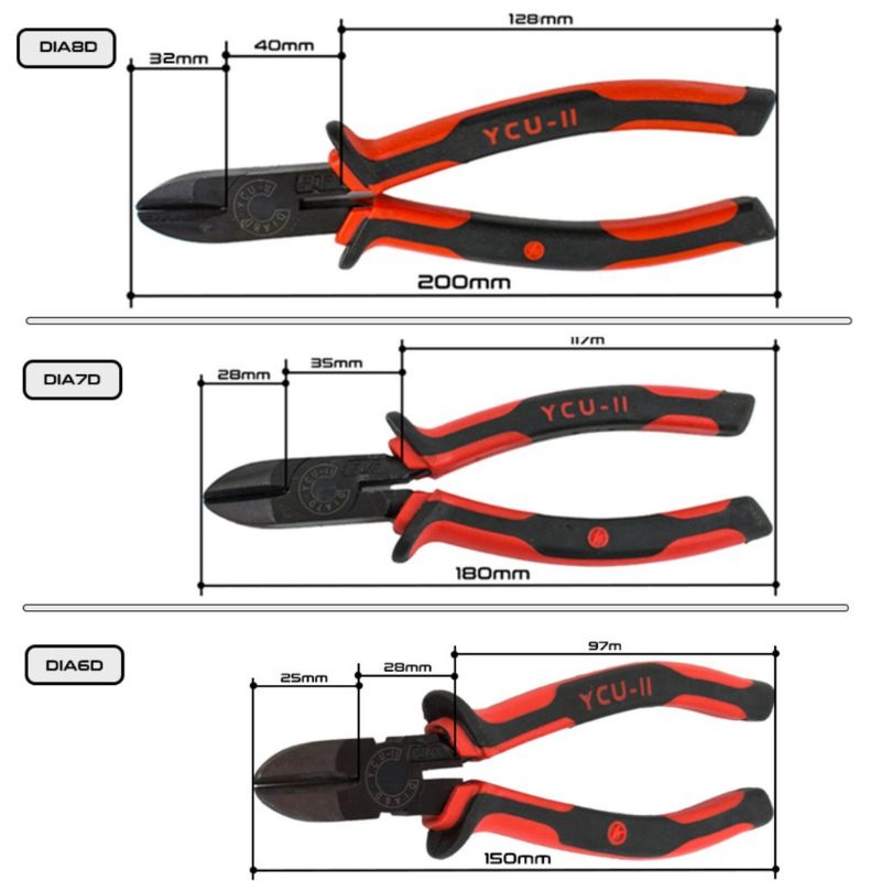 3. Kìm cắt: 6inch -150mm, 7inch - 180mm, 8inch -200mm