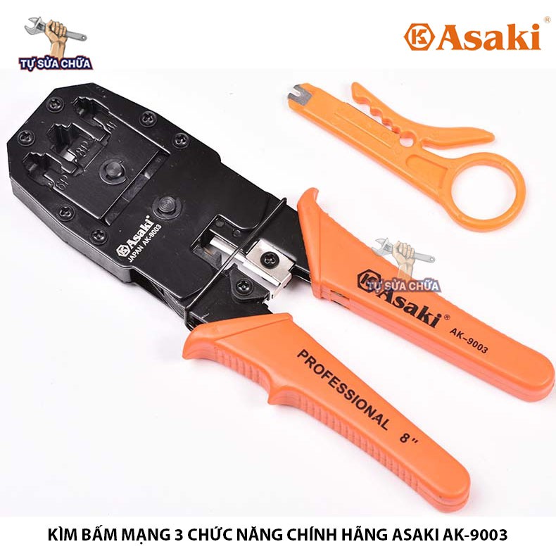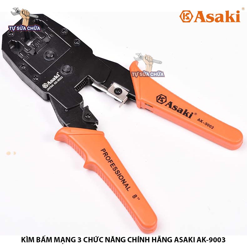 Nhà cửa & Đời sống > Dụng cụ & Thiết bị tiện ích > Dụng cụ > Kìm || Kìm Kềm bấm cáp mạng 3 chức năng 8"/200mm Asaki AK-9003, bấm đầu RJ45, RJ11, RJ22 hàng chính hãng loại xịnCòn hàng