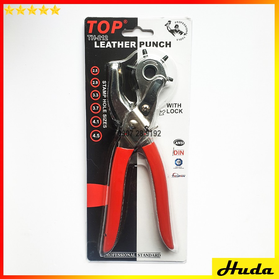 KÌM KỀM BẤM LỖ THẮT LƯNG DÂY NỊCH TOP TH-212 TAIWAN-Kìm bấm lỗ thắt lưng TOP TH-212 chuyên dụng để đục lỗ với 6 kích cỡ lỗ 2.5mm; 2.9mm; 3.3mm; 3.7mm; 4.1mm; 4.5mm phù hợp cho việc thường xuyên đục lỗ thắt lưng, dây nịt, dây da đồng hồ, bìa giấy.