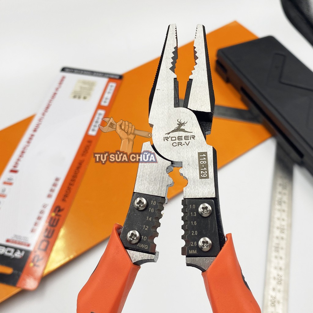 Nhà cửa & Đời sống > Dụng cụ & Thiết bị tiện ích > Dụng cụ > Kìm || Kìm Kềm điện đa năng R'deer RT 118-129 9inch/225mm 4 trong 1 (Kẹp-Cắt-Uốn-Tuốt dây)Còn hàng