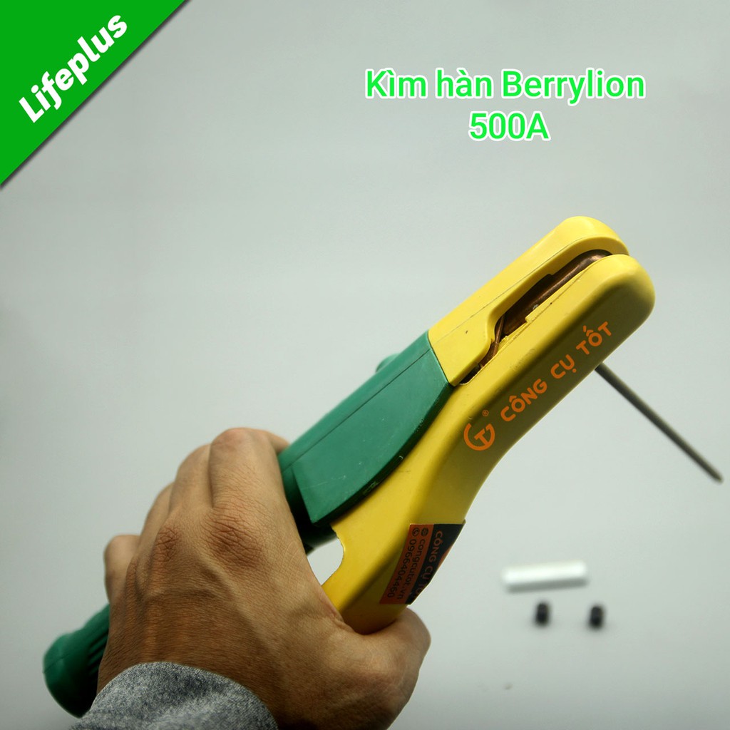 Kìm hàn Berrylion 500A vừa có tác dụng giữ chặt que hàng và cung cấp dòng điện hàn khi hàn. Kìm hàn nhẹ, có khả năng giữ chắc que hàn, kẹp nhả một cách dễ dàng và chống nóng quá mức khi làm việc liên tục.