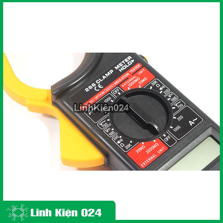 Kìm Kẹp Dòng DT266 750VAC/1000VDC/1000AKìm Kẹp Dòng là một đồng hồ đo điện vạn năng có thêm chức năng kẹp để đo dòng. Kìm Kẹp Dòng DT266 750VAC/1000VDC/1000A có thể đo dòng điện, điện áp một chiều và xoay chiều, điện trở... Bên cạnh đó đồng hồ còn có còi báo đo thông mạch. Sử dụng Ampe kìm kẹp nên có thể đo dàng điện một cách rất nhanh chóng.