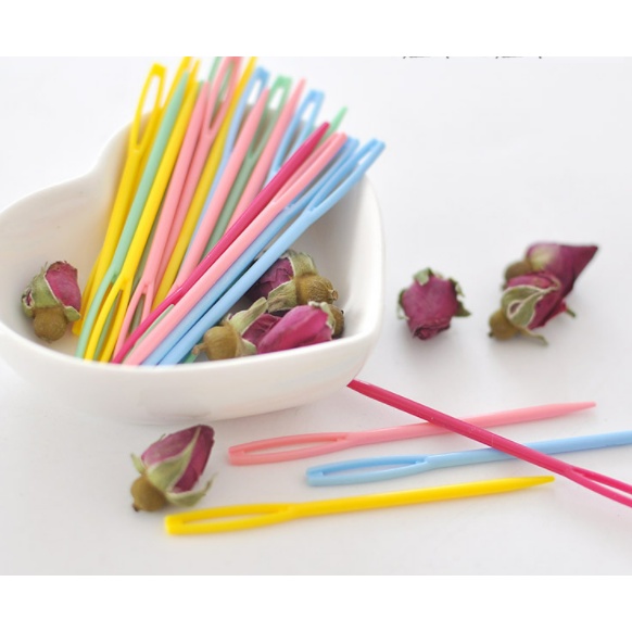 kim khâu nhựakim khâu len nhung đũa độ dài 9cm, lỗ to các chị em xỏ len nhung đũa thoải mái.