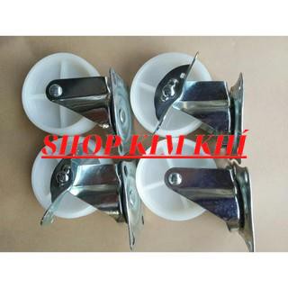 Cảm ơn bạn đã quan tâm đến sản phẩm của shop!Bộ 4 bánh xe đẩy hàng xoay 360 độ, có khóa chống trượt loại 5cm nhóm màu trắng