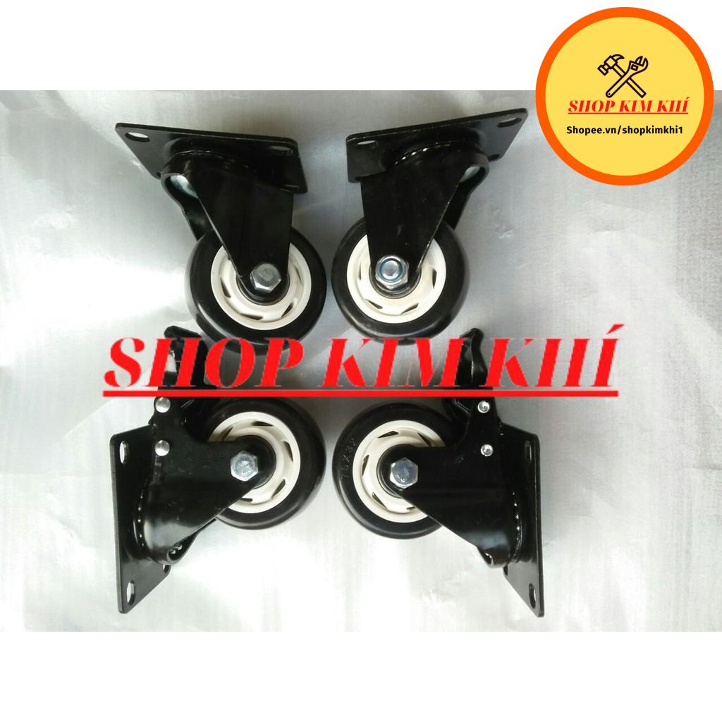 [Kim khí] Combo 4 bánh xe đẩy hàng xoay 360 độ, có khóa chống xoay chống trượt loại 7,5cm màu đen viền trắng