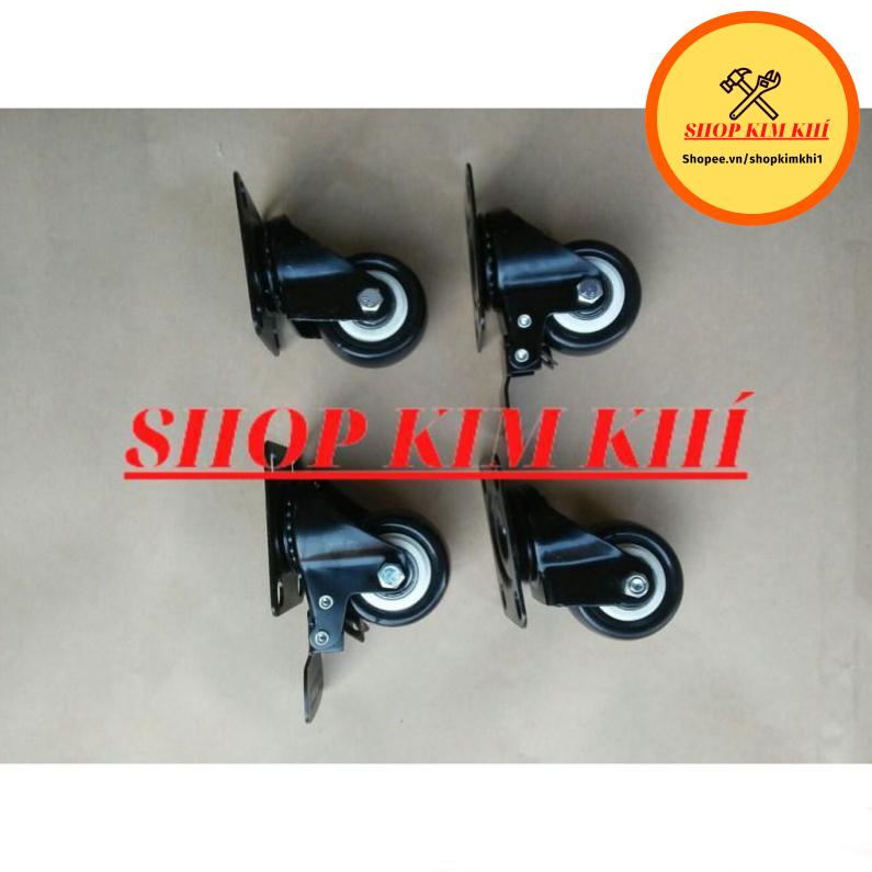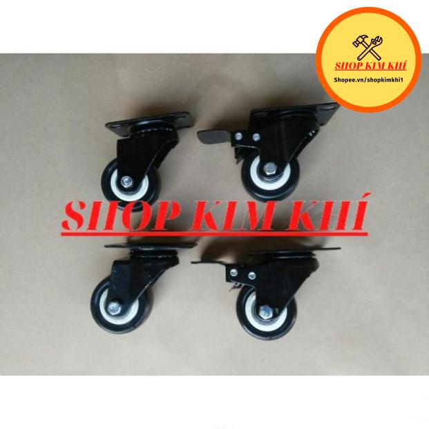 [Kim khí] Combo 4 bánh xe đẩy hàng xoay 360 độ, có khóa chống xoay chống trượt loại 5cm nhóm màu viền đen