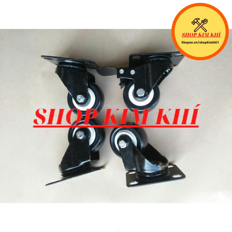 Nhà cửa & Đời sống > Dụng cụ & Thiết bị tiện ích > Xe đẩy || [Kim khí] Combo 4 bánh xe đẩy hàng xoay 360 độ, có khóa chống xoay chống trượt loại 5cm nhóm màu viền đenCòn hàng