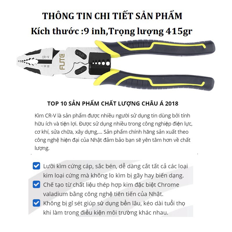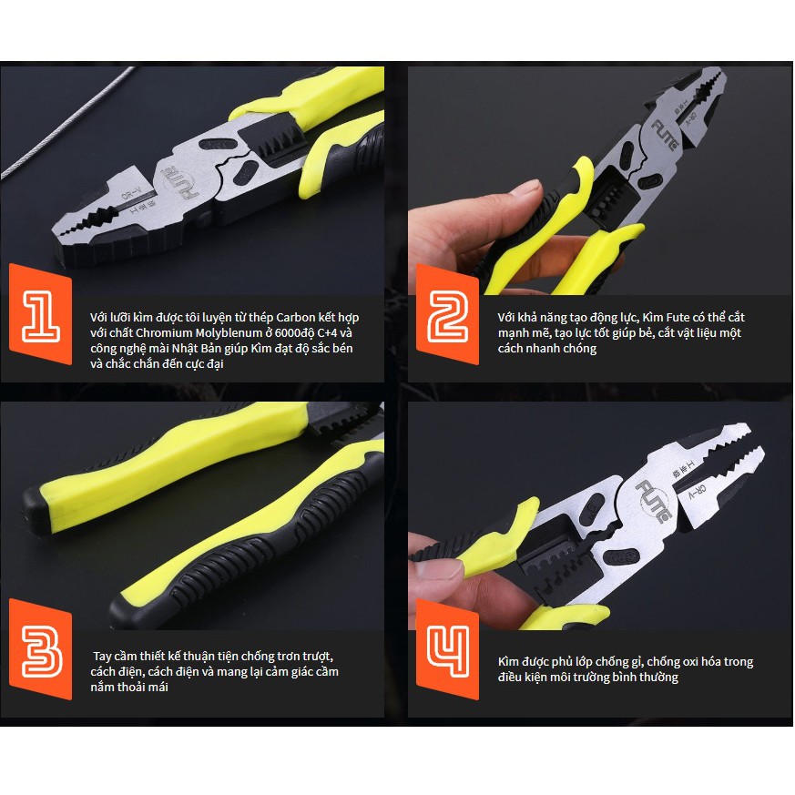Kìm, kiềm cắt đa năng cộng lực cắt đứt mọi loại kim loại Ổ khóa, dây xích, dây đàn pinano công nghệ Nhật Bản- Sản phẩm được tinh luyện từ hợp kim cứng, rất bền bỉ tạo sự chắc chắn và có độ bền cao, tránh cong vênh, không dễ bị hư hỏng như các loại thông thường. Mũi kìm cứng giúp bạn thoải mái sử dụng mà không sợ bị gãy hay cong.