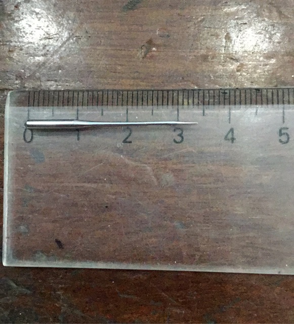 Kim máy vắt sổ DC x 1 có đầu kim tròn, chiều dài kim 3.4cmKim sử dụng cho máy vắt sổ công nghiệp hoặc máy vắt sổ Trung Quốc màu xanh