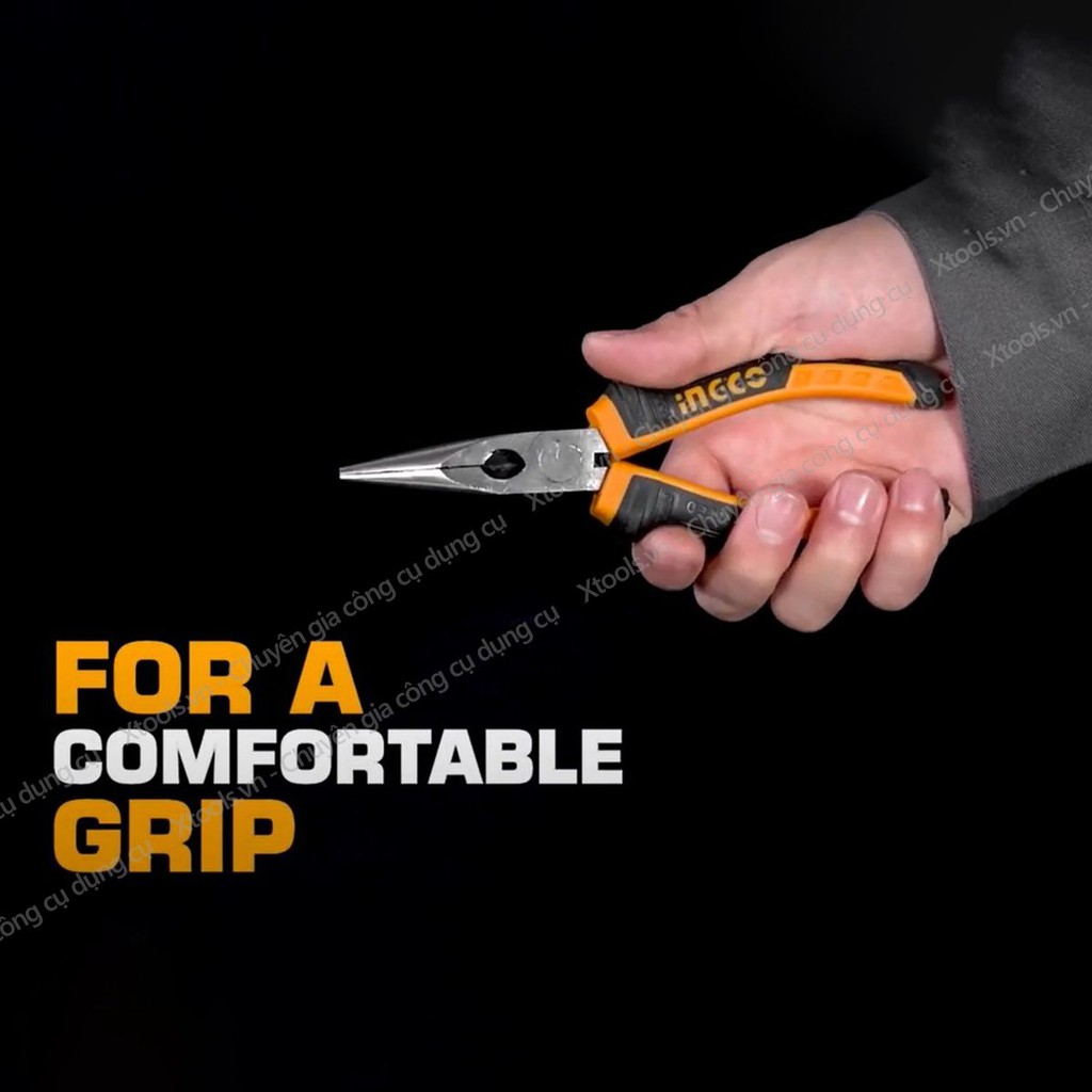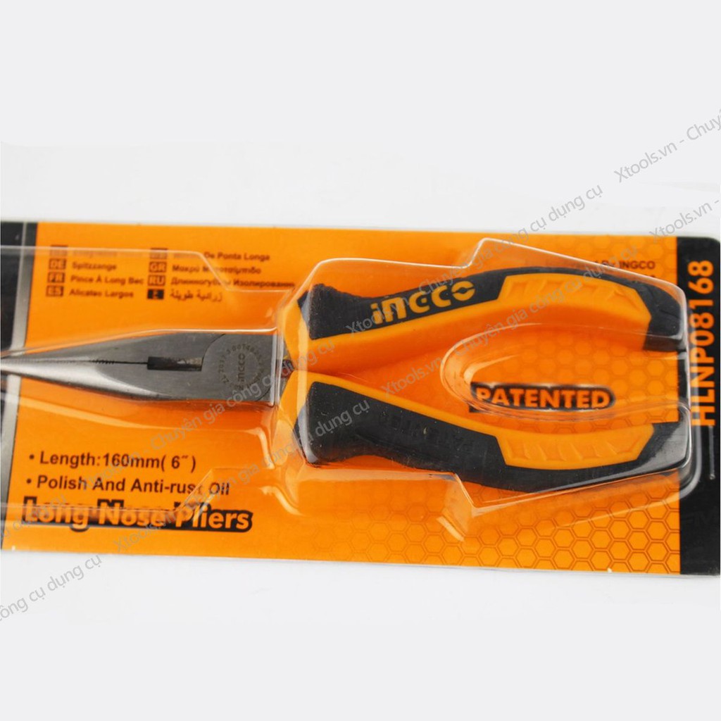Kìm mỏ nhọn dài cách điện INGCO HLNP08168 6" kềm mỏ dài thép Cr-V siêu cứng chống rỉ sét tay cầm cao su chống trơn trượt