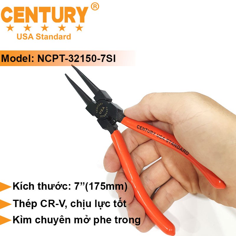 Nhà cửa & Đời sống > Dụng cụ & Thiết bị tiện ích > Dụng cụ > Kìm || Kìm mở phe trong mũi thẳng 7" (175mm) Century - NCPT-32150-7SICòn hàng