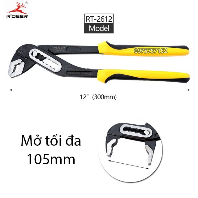 Kìm mỏ quạ 7 lỗ đa năng thép đúc nguyên khối R'DEER 12 inch/ 300mm, kìm kẹp giữ, vặn ống nước chuyên nghiệp