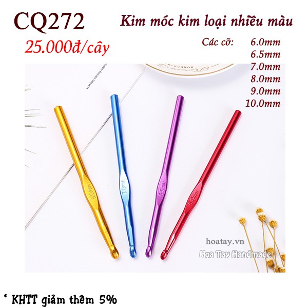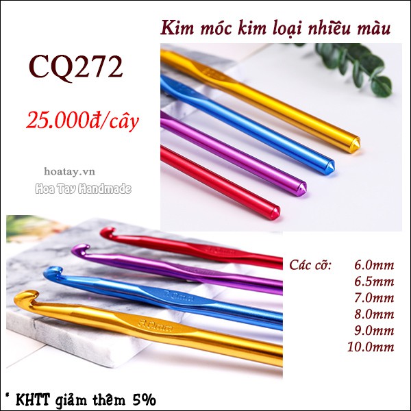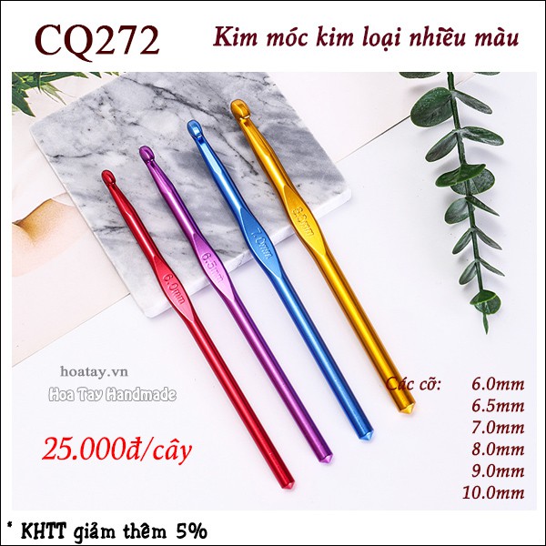 Kim Móc Kim Loại Nhiều Màu CQ272Kim Móc bằng kim loại, mỗi size một màu. Kim móc cỡ lớn dùng móc các loại sợi lớn, len nhung, sợi vải...