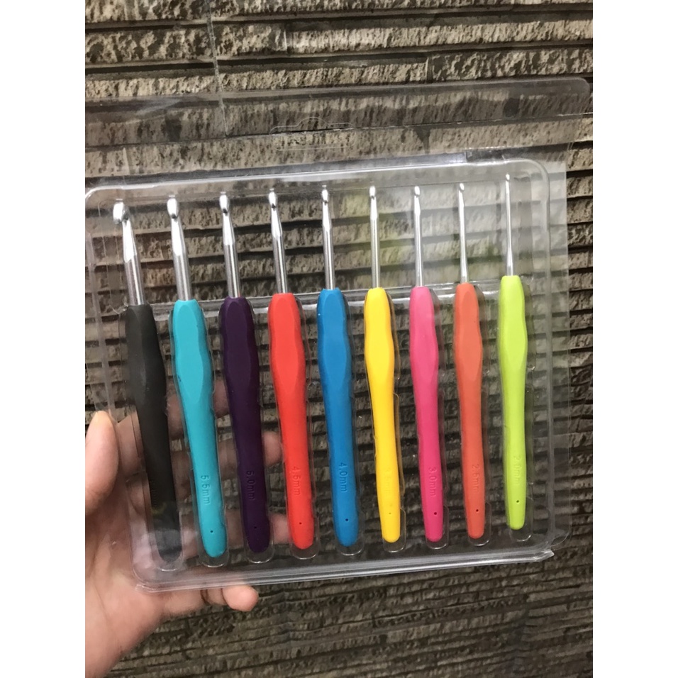 🌹 Bộ kim móc len cán dẻo 9 cây bao gồm các size: 2.0mm/ 2,5mm/3.0mm/3,5mm/4.0mm/4,5mm/5mm/5,5mm/6.0mm.🌹 Giá:120k/bộ