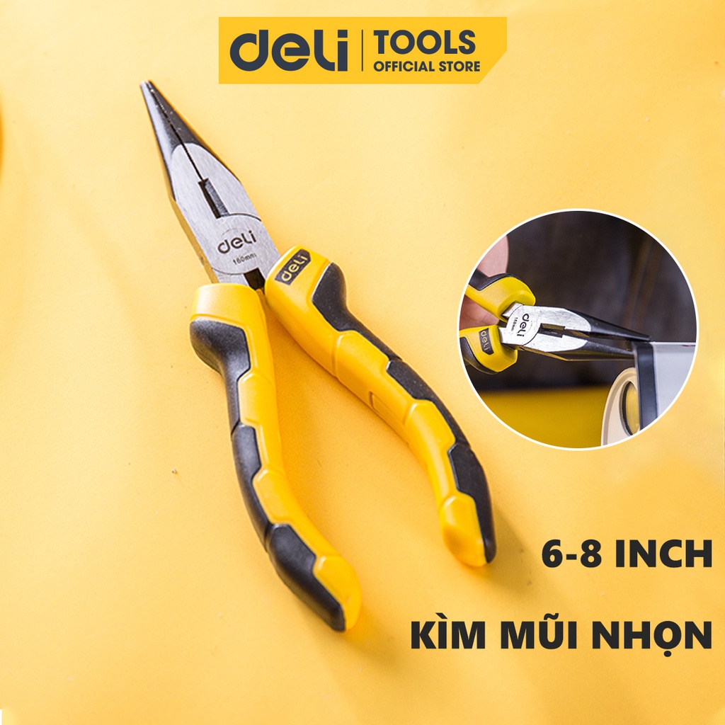 Nhà cửa & Đời sống > Dụng cụ & Thiết bị tiện ích > Dụng cụ > Kìm || Kìm Mũi Nhọn 6-8 Inch Deli Cao Cấp Chính Hãng - Chất Liệu Thép Cacbon Siêu Bền - Tay Cầm Chống Trượt - EDL2106Còn hàng